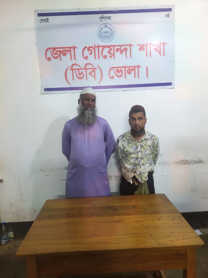 ইং ২৮-০৩-২০২৫ তারিখ ১৭.১৫ ঘটিকায় সময় জেলা গোয়েন্দা শাখা (ডিবি) ভোলা এসআই (নিঃ)/মোহাম্মাদ কাজল ইসলাম সংঙ্গীয় অফিসার ফোর্স সহ মাদক উদ্ধার অভিযান পরিচালনা করিয়া ভোলা সদর মডেল থানাধীন বেপারী বাজারের দক্ষিণ পার্শে আলীনগর ইউনিয়নের ৬নং ওয়ার্ডস্থ ইলিয়াছ খন্দকারের বাড়ীর সামনে পাকা রাস্তার উপর থেকে ০১। মোঃ ইউনুছ (৩৫), পিতা-মৃত আঃ খালেক, মাতা-মৃত নুরজাহান বেগম, সাং-গুপ্তমুন্সি ৮নং ওয়ার্ড, পূর্ব ইলিশা ইউপি, থানা ও জেলা-ভোলা, ২। মোঃ শাহজাহান (৫১), পিতা-মৃত আলী হোসেন হাওলাদার, মাতা-আয়াতুন্নেছা, সাং-উত্তর মাদ্রাজ ৮নং ওয়ার্ড, জিন্নানগর ইউপি, থানা-চরফ্যাশন, জেলা-ভোলাদ্বয়ের নিকট হইতে ৩০০ (তিনশত) পিচ অবৈধ মাদকদ্রব্য ইয়াবা ট্যাবলেট সহ গ্রেফতার করা হয়। আসামীর বিরুদ্ধে মাদক মামলা রুজু প্রক্রিয়াধীন।