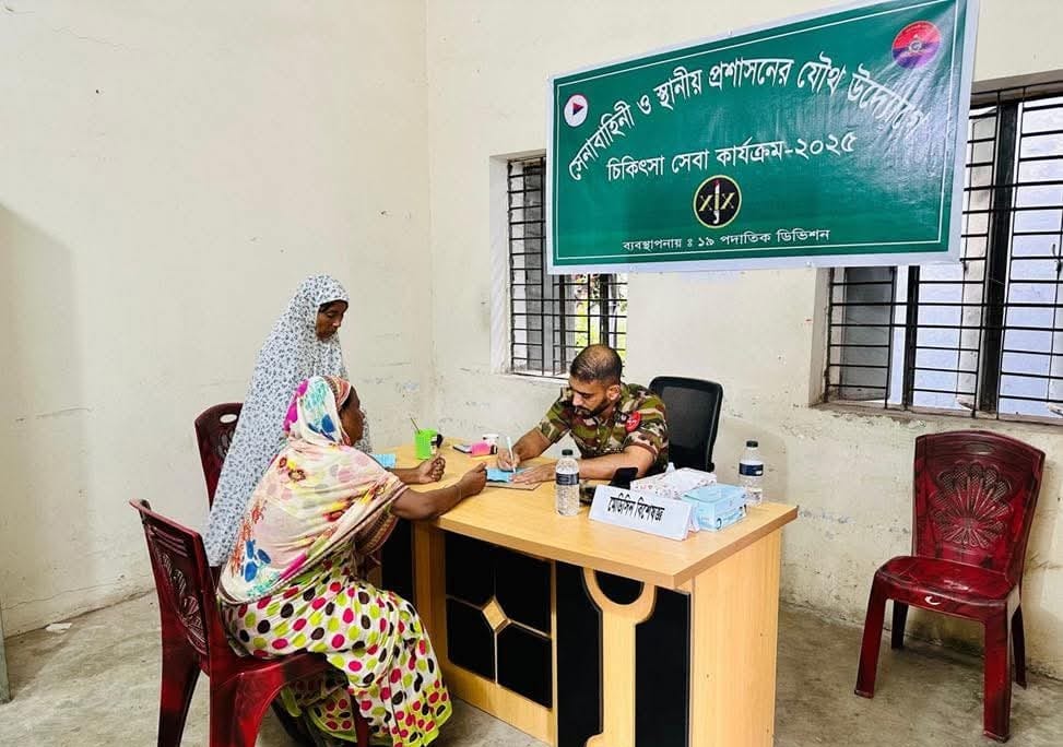ঢাকা, ১৭ জুলাই ২০২৫ (বৃহস্পতিবার): আজ কিশোরগঞ্জ জেলার ভৈরব উপজেলার মাতৃসদন কেন্দ্রে অসহায় ও দুস্থ ব্যক্তিদের জন্য বাংলাদেশ সেনাবাহিনীর উদ্যোগে বিনামূল্যে চিকিৎসা সেবা, চশমা বিতরণ ও ঔষধ বিতরণ কর্মসূচির আয়োজন করা হয়। মেডিসিন, চক্ষু ও গাইনি বিশেষজ্ঞ চিকিৎসকবৃন্দের সমন্বয়ে গঠিত মেডিকেল টিম কর্তৃক প্রায় ৬ শতাধিক রোগীকে দিনব্যাপী চিকিৎসা সেবা ও ঔষধ প্রদান করা হয়। পাশাপাশি ৯০ জন চক্ষু রোগীকে চশমা প্রদান করা হয়।