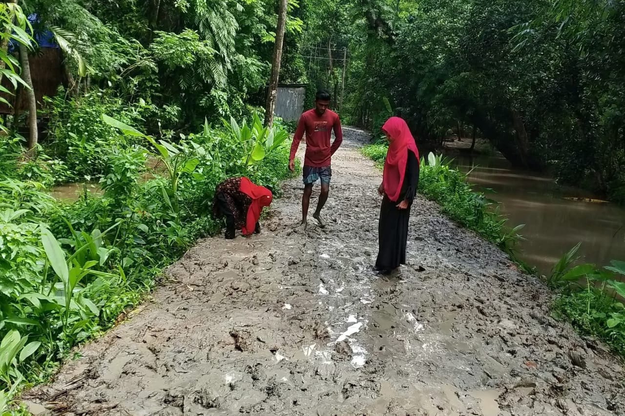 টাকা কোথায় গেলো জনগন জানতে চাই দাই বাড়ি কোনা থেকে উওর দিকে রাস্তাটিতে ফরাজি বাড়ি মাতব্বর বাড়ি মাহাজন বাড়ি মৌলভী বাড়ি গাজী বাড়ি ও অএ এলাকার ৫০০০ লোক বসবাস করেন এবং এই রাস্তাটিতে চলাফেরা করেন ।