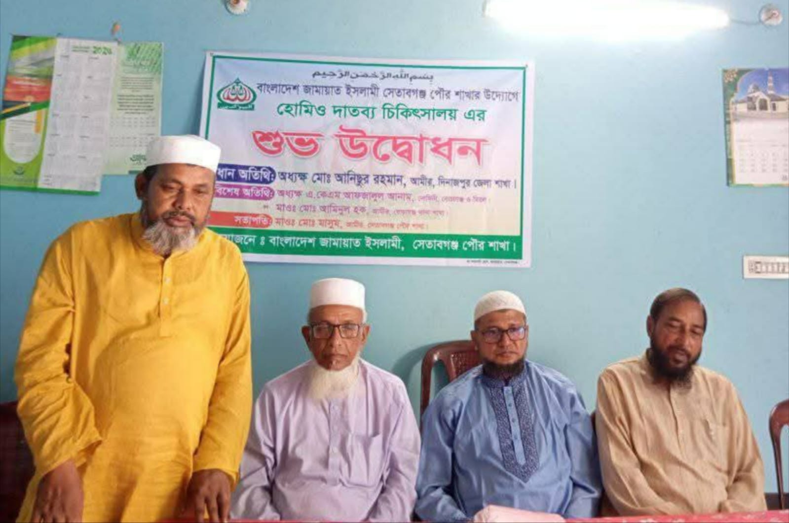 দিনাজপুরের বোচাগঞ্জ উপজেলায় সেতাবগঞ্জ পৌর জামায়াতের উদ্যোগে ফ্রি হোমিও চিকিৎসাসেবা কার্যক্রমের উদ্বোধন করা হয়েছে। সমাজের অসহায় ও সাধারণ মানুষের জন্য সাপ্তাহিক এই উদ্যোগকে একটি মানবিক দায়িত্ব হিসেবে দেখছেন আয়োজকরা।