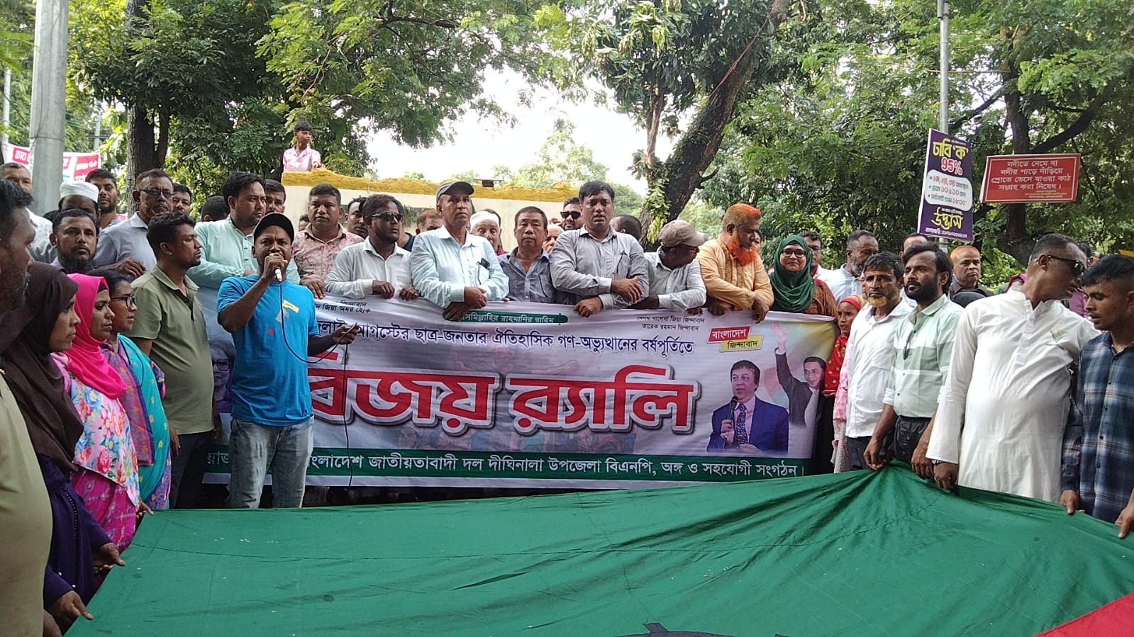 গণ-অভ্যুত্থানের এক বছর পূর্তি উপলক্ষে খাগড়াছড়ির দীঘিনালায় বাংলাদেশ জাতীয়তাবাদী দল (বিএনপি) ও এর অঙ্গ-সহযোগী সংগঠনসমূহের উদ্যোগে বিজয় র্যালি ও আনন্দ মিছিল অনুষ্ঠিত হয়েছে।