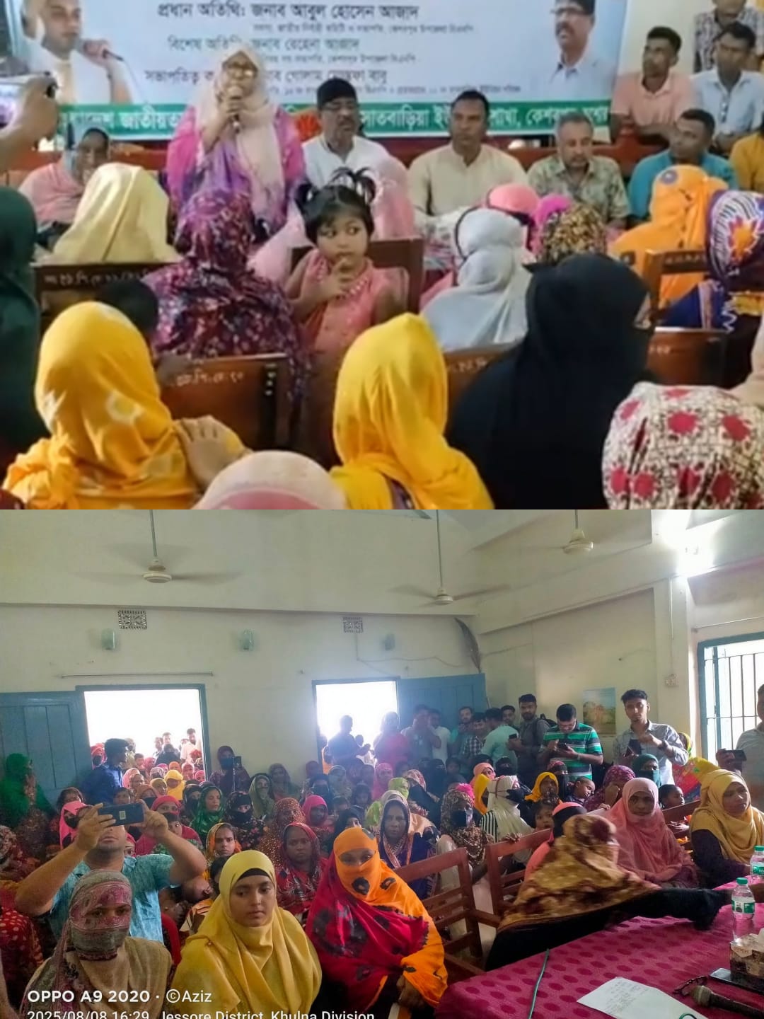 যশোরের কেশবপুরে গতকাল (৮ আগষ্ট)শুক্রবার মহিলা সমাবেশ অনুষ্ঠিত হয়েছে।উক্ত মহিলা সমাবেশে ১০ নং সাতবাড়িয়া ইউনিয়ন পরিষদ চেয়ারম্যান,ও ইউনিয়ন বিএনপির সভাপতি গোলাম মোস্তফা বাবুর সভাপতিত্বে, প্রধান অতিথি,বিএনপির কেন্দ্রীয় নির্বাহী কমিটির সদস্য ও কেশবপুর উপজেলা বিএনপির সভাপতি আলহাজ্জ আবুল হোসেন আজাদের উপস্তিতিতে নারী সমাবেশ অনুষ্ঠিত হয়েছে।বিশেষ অতিথি হিসাবে উপস্তিত ছিলেন,কেশবপুর উপজেলা বিএনপির সিনিয়র সহ-সভাপতি রেহানা আজাদ।এছাড়া আরও উপস্তিত ছিলেন,কেশবপুর উপজেলা বিএনপির সাধারণ সম্পাদক প্রফেসর আব্দুর রাজ্জাক,সাংগঠনিক সম্পাদক আলমগীর কবির,যুগ্ন-সম্পাদক আলমগীর সিদ্দিকী,কেশবপুর উপজেলা যুবদলের সদস্য সচিব পদপ্রার্থী-মেহেদী হাসান হিমেল,সহ ছাত্রদল,স্বেচ্ছাসেবকদল,যুবদল,মহিলাদল, কৃষকদল,সহ বিভিন্ন পর্যায়ের নেতৃবৃন্দ।