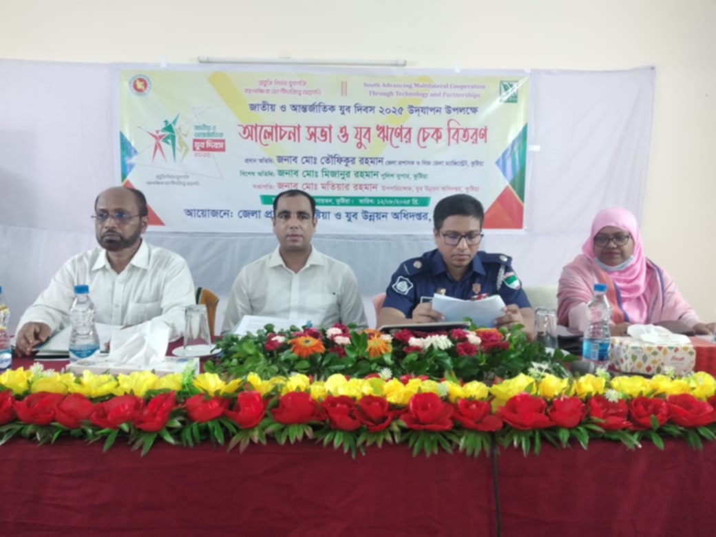 জাতীয় ও আন্তর্জাতিক যুব দিবস ২০২৫ উপলক্ষে কুষ্টিয়ায় আয়োজিত আলোচনা সভা ও যুব ঋণের চেক বিতরণ অনুষ্ঠানে প্রধান অতিথির বক্তব্যে জেলা প্রশাসক ও জেলা ম্যাজিস্ট্রেট জনাব মোঃ জাহাঙ্গীর আলম এ কথা বলেন।