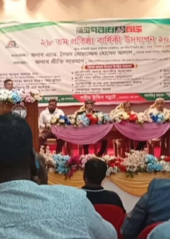 রাজধানী ঢাকায় উন্নয়ন কর্পোরেশনের দ্বিতীয় তলার হলরুমে বর্ণাঢ্য আয়োজনের মধ্য দিয়ে পালিত হলো দৈনিক সময়ের অপরাধচক্র পত্রিকার ২৮তম প্রতিষ্ঠাবার্ষিকী। অনুষ্ঠানে দেশের বিশিষ্ট রাজনৈতিক নেতা, আইনজীবী, ব্যবসায়ী এবং গণমাধ্যম ব্যক্তিত্বরা উপস্থিত ছিলেন।