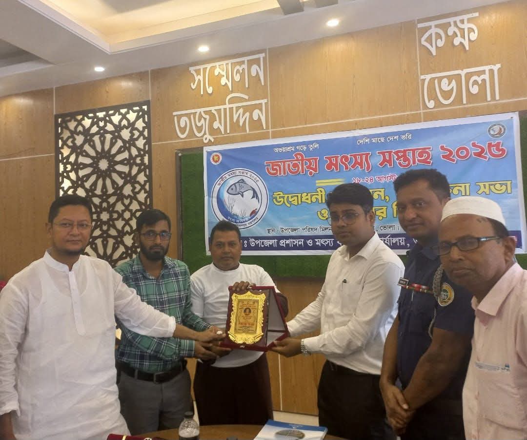 উপজেলা প্রশাসন ও সৎস্য অফিসের আয়োজনে ভোলার তজুমদ্দিনে জাতীয় মৎস্য সপ্তাহ-২০২৫ উদ্বোধনী অনুষ্ঠান ও আলোচনা সভার প্রধান অতিথি হিসেবে উপস্থিত ছিলেন, উপজেলা নির্বাহী কর্মকর্তা শুভ দেবনাথ।