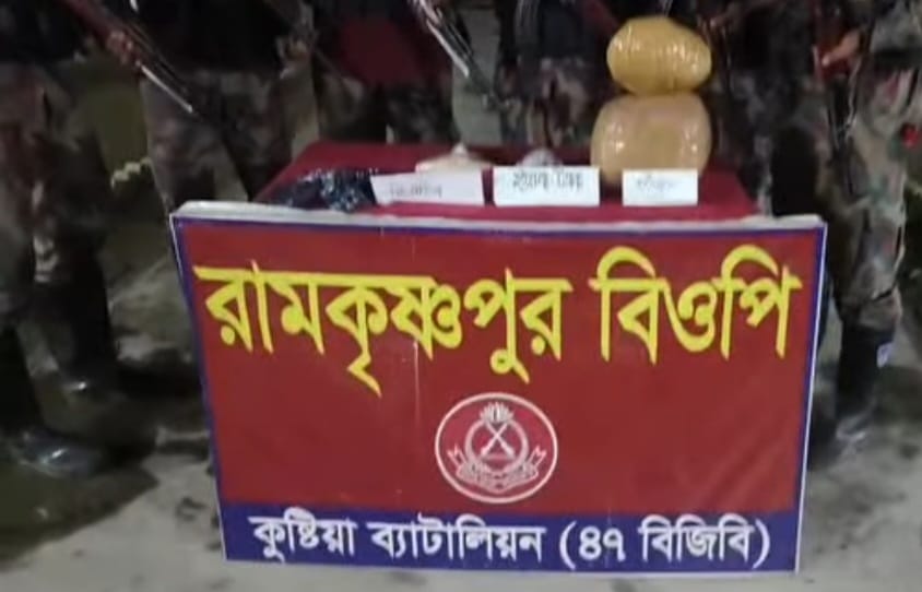 বিজিবি সূত্র জানায়, মাদক ও চোরাচালান প্রতিরোধের নিয়মিত অভিযানের অংশ হিসেবে কুষ্টিয়া ব্যাটালিয়ন ৪৭ বিজিবি এর অধীনস্থ ধর্মদাহ বিওপির একটি বিশেষ টহল দল গোপন সংবাদের ভিত্তিতে অভিযান চালায় । হাবিলদার মোঃ শহিদুল ইসলামের নেতৃত্বে দলটি মঙ্গলবার রাত আনুমানিক ১:১০ সময় দায়িত্বপূর্ণ সীমান্ত হতে প্রায় ১৫০ গজ বাংলাদেশের অভ্যন্তরে ডিজিটি মাঠ নামক স্থানে অবস্থান নেয়।