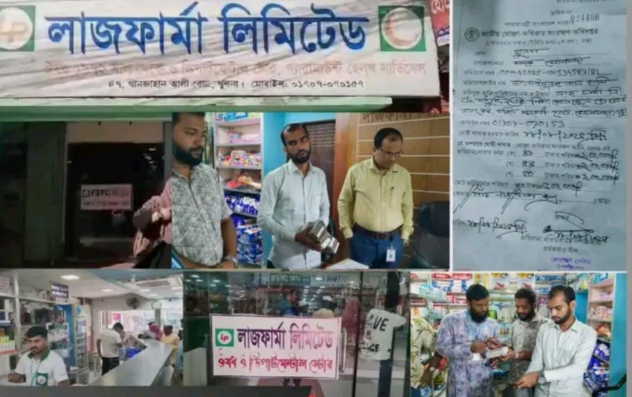 সম্প্রতি খুলনার রয়্যাল মোড় এলাকায় অবস্থিত লাজফার্মায় অভিযান চালিয়ে অননুমোদিত ভেজাল ওষুধের সন্ধান পেয়েছে ভোক্তা অধিকার সংরক্ষণ অধিদপ্তর। ১৮ আগস্ট দুপুরে হাতে নাতে ধরে লাজফার্মার ওই আউটলেটে ৫ লাখ টাকা জরিমানা করা হয়েছে। মানুষের জীবনরক্ষকারী ওষুধ নিয়ে প্রতারণা করা, ভেজাল ও অননুমোদিত ওষুধ ক্রয়-বিক্রয়ের শাস্তি শুধুই কি জরিমানা? এ প্রশ্ন থাকলো ভোক্তা অধিকার সংরক্ষণ অধিদপ্তর ও সাধারণ মানুষের কাছে।