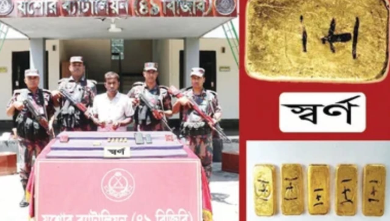যশোরের খুলনা-যশোর মহাসড়কের রাজারহাট বাসস্ট্যান্ড এলাকা থেকে ৬৬৩ গ্রাম ওজনের পাঁচটি স্বর্ণের বারসহ এক আফছার আলী নামে এক চোরাকারবারিকে গ্রেফতার করে বর্ডার গার্ড বাংলাদেশ (বিজিবি)