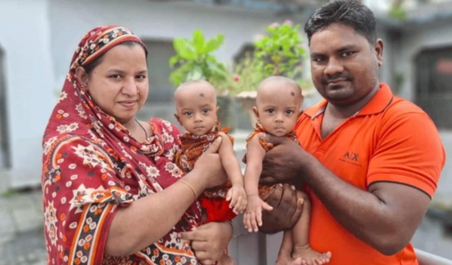 বাবা-মায়ের সঙ্গে শিশু জুহি-রুহি।