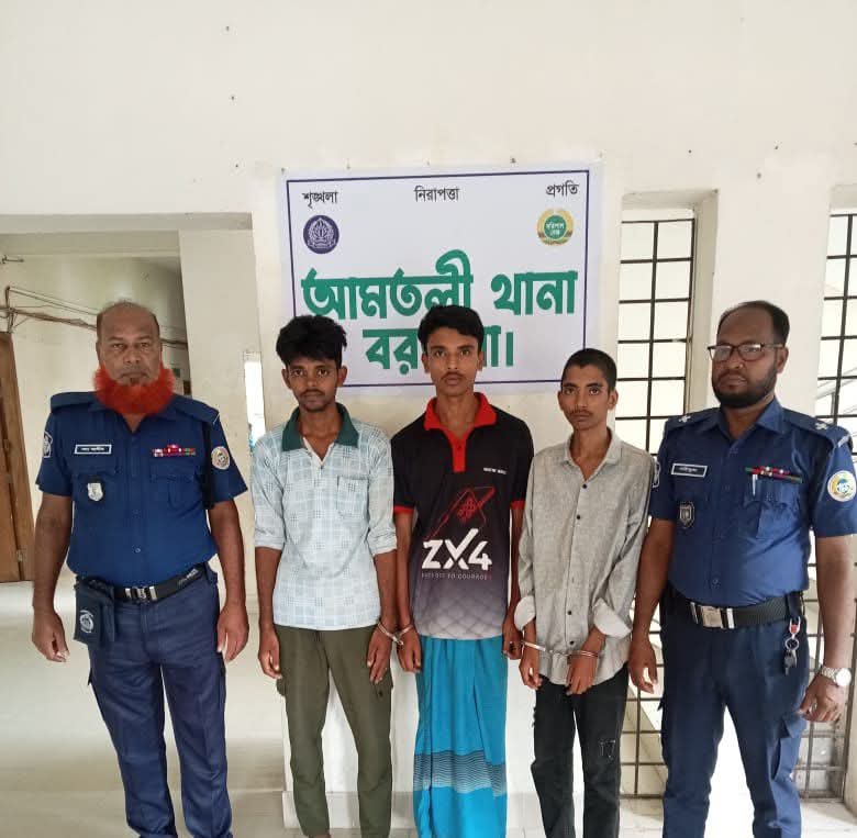 উপজেলার চাওড়া ইউনিয়নে জনৈক মোসা: লাইজু বেগম এর সাথে ফরহাদ ইসলাম জয়ের তিন বছর পূর্বে বিবাহ বিচ্ছেদ হয়। গতকাল সন্ধ্যায় লাইজু বেগম ফরহাদকে তাদের মেয়েকে দেখার জন্য আসতে বললে ফরহাদ আমতলী থানাধীন চাওড়া ইউনিয়নস্থ উশ্যিতলা মেইন রাস্তার পাশে আসে। লাইজু পূর্ব পরিকল্পিতভাবে ফরহাদকে শায়েস্তা করার উদ্দেশ্যে কিশোর গ্যাংয়ের কিছু সদস্যদের উক্ত স্থানে রাখে। তারা ফরহাদকে মারপিট করে মোবাইল এবং টাকা পয়সা নিয়ে যায়। রাতে আমতলী থানা পুলিশ অভিযান পরিচালনা করে কিশোর গ্যাংয়ের সদস্যদের গ্রেপ্তার করেন, ১। মোসাঃ লাইজু বেগম(২৪) কিশোর গ্যাং সদস্য ২। মোঃ সাকিল (১৯) ৩/ মোঃ রাকিবুল (১৯) ৪/মোঃ ওলি হাওলাদারদের(১৯)গ্রে'ফতার করা হয়েছে।তাদের বিরুদ্ধে মা'মলা রুজু করে বিজ্ঞ আদালতে প্রেরন করা হয়েছে।