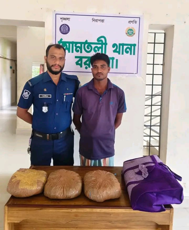 এরই ধারাবাহিকতায় ১১/০৯/২০২৫খ্রিঃ তারিখ বরগুনা জেলার আমতলী থানা এলাকায় অভিযান পরিচালনা কালে দেওয়ান জগলুল হাসান, অফিসার ইনচার্জ আমতলী থানার নেতৃত্বে রঞ্জিত কুমার সরকার, ইনচার্জ গাজীপুর ফাঁড়ি এবং এসআই (নিঃ)/ আবু হানিফ, সঙ্গীয় অফিসার/ফোর্সের সহায়তায় বরগুনা জেলার আমতলী থানাধীন গাজীপুর বন্দর মাধ্যমিক বিদ্যালয়ের পূর্ব পাশে গাজীপুর টু সাহেব বাড়ি রাস্তার উপর থেকে ধৃত আসামীঃ ১। মো: আমিরুল মাদবর (৩৫)পিতা- মস্তফা মাদবর সাং- কাঠালিয়া ৪ নং ওয়ার্ড, এ/পি- গাজীপুর ৯ নং ওয়ার্ড থানা-আমতলী জেলা-বরগুনাকে ০৩ কেজি গাঁজাসহ গ্রেফতার করা হয়। গ্রেফতারকৃত আসামীদের বিরুদ্ধে আমতলী থানায় মাদকদ্রব্য নিয়ন্ত্রণ আইনে মামলা রুজু করা হয়েছে।