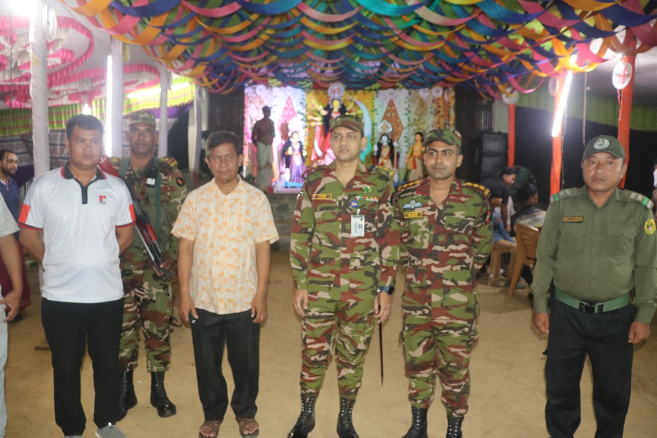 পরিদর্শনকালে তিনি পূজা কমিটির সদস্যদের সাথে কুশলাদি বিনিময় করেন এবং পূজার সার্বিক নিরাপত্তা ও শান্তিপূর্ণ পরিবেশ বজায় রাখতে বলেন এবং প্রয়োজনীয় সহযোগিতার আশ্বাস প্রদান করেন। এ সময় তিনি পূজা কমিটির হাতে আর্থিক সহায়তাও তুলে দেন। এবং জোন কমান্ডার বলেন ভবিষ্যতেও এমন কার্যক্রম চলমান থাকবে বলে জানান