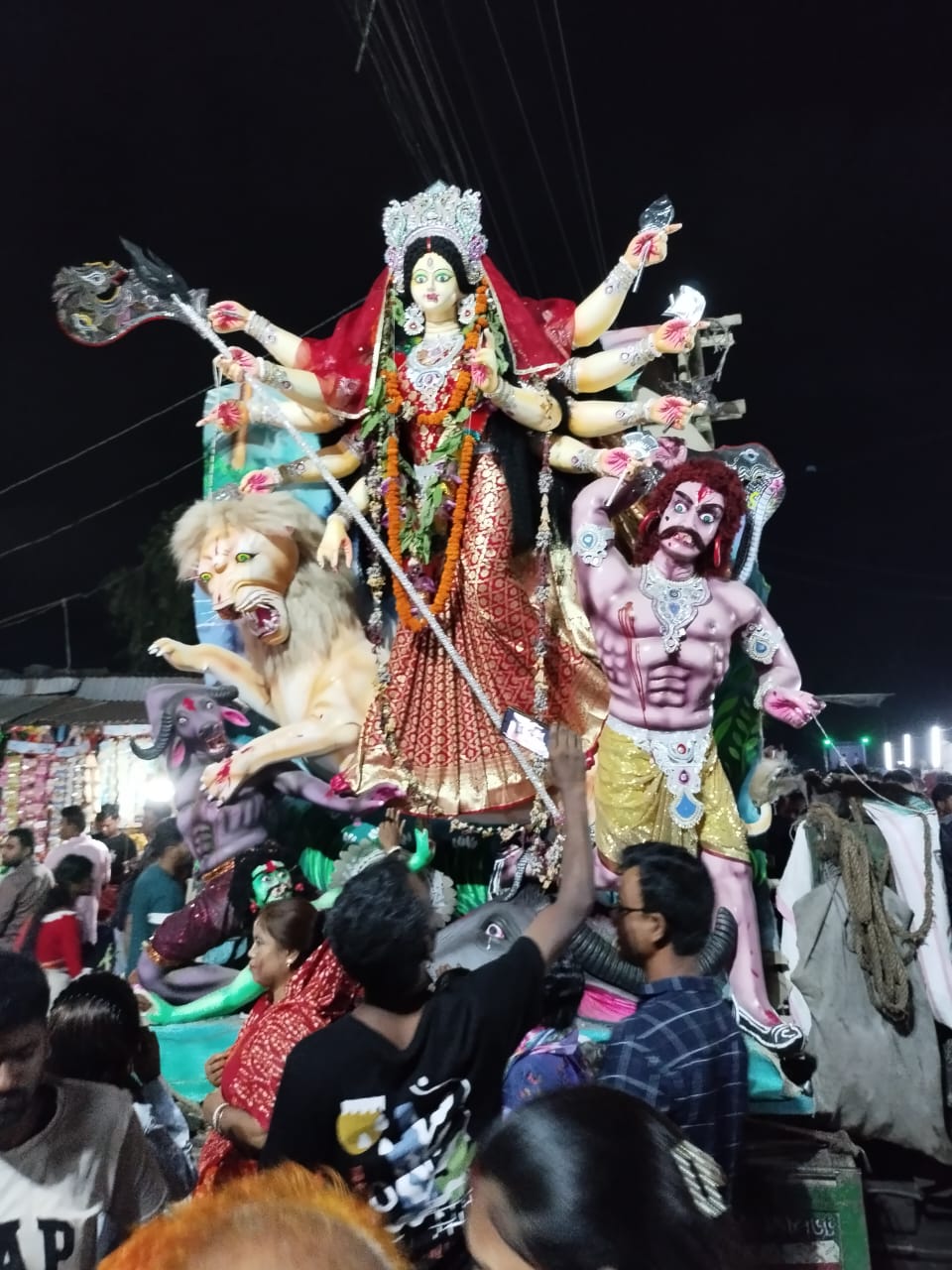 বেলা ১০ টার দিকে শুরু হয় সিঁদুর খেলার আনুষ্ঠানিকতা ভক্তরা দাঁড়িয়ে দেবীকে সিঁদুর মাখিয়ে প্রণাম জানান। এরপর একে অপরকে সিঁদুর মেখে আনন্দ ভাগাভাগি করে নেন। শঙ্খ ও উলুধ্বনিতে মুখরিত হয়ে ওঠে পূজামণ্ডপ এলাকা। দুপুরের পর অনুষ্ঠিত হয় আরতি ও শোভাযাত্রা। পরে বিকেল মাইনি নদীতে আনুষ্ঠানিকভাবে প্রতিমা বিসর্জন দেওয়া হয়।