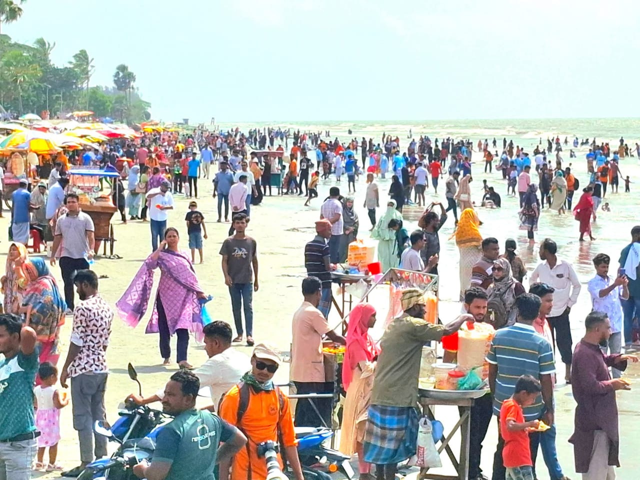এদিকে, পর্যটকের ভিড়ের কারণে সৈকতসংলগ্ন ব্যবসা প্রতিষ্ঠানের বিক্রি বেড়েছে এবং হোটেল-মোটেলগুলোতেও শতভাগ বুকিং রয়েছে বলে আবাসিক হোটেল কর্তৃপক্ষ সূত্রে জানা গেছে।