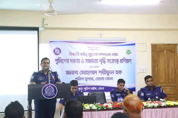 রবিবার (০৫ অক্টোবর) সকাল ৯ ঘটিকায় ভোলা জেলা পুলিশ লাইন্সে ০৩ দিন মেয়াদী নির্বাচনী দায়িত্ব সুষ্টুভাবে সম্পাদনের লক্ষ্যে কনস্টেবল হতে ইন্সপেক্টর পদমর্যাদার পুলিশ সদস্যদের দক্ষতা ও সক্ষমতা বৃদ্ধি (৪র্থ পর্যায়ের) প্রশিক্ষণ কোর্স (১ম ব্যাচ) এর শুভ উদ্বোধন করা হয়েছে।