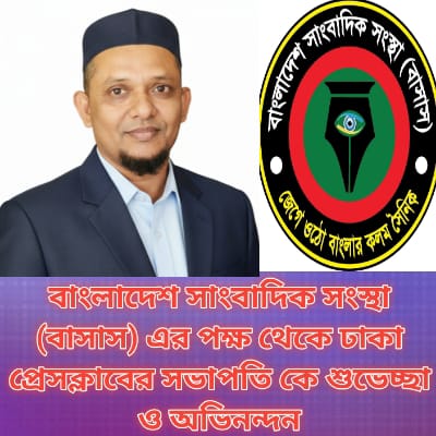 বাংলাদেশ সাংবাদিক সংস্থা (বাসাস)-এর পক্ষ থেকে ঢাকা প্রেসক্লাবের সভাপতি আওরঙ্গজেব কামালকে আন্তরিক শুভেচ্ছা ও অভিনন্দন জানানো হয়েছে। সোমবার (৬ অক্টোবর) সংবাদ সংস্থা বাসাসের এক শুভেচ্ছা বার্তায় সংগঠনের নেতৃবৃন্দ তাঁর প্রতি এই শ্রদ্ধা ও অভিনন্দন জ্ঞাপন করেন। শুভেচ্ছা বার্তায় বলা হয়— আওরঙ্গজেব কামাল একজন সত্যনিষ্ঠ, ন্যায়পরায়ণ ও মানবিক গুণে পরিপূর্ণ সাংবাদিক নেতা, যাঁর নেতৃত্বে ঢাকা প্রেসক্লাব আজ সাংবাদিক সমাজের মর্যাদার প্রতীক হয়ে উঠেছে। তিনি সবসময় সত্য ও ন্যায়ের পক্ষে কথা বলেন এবং দেশ ও সমাজের কল্যাণে নিবেদিতভাবে কাজ করে যাচ্ছেন।