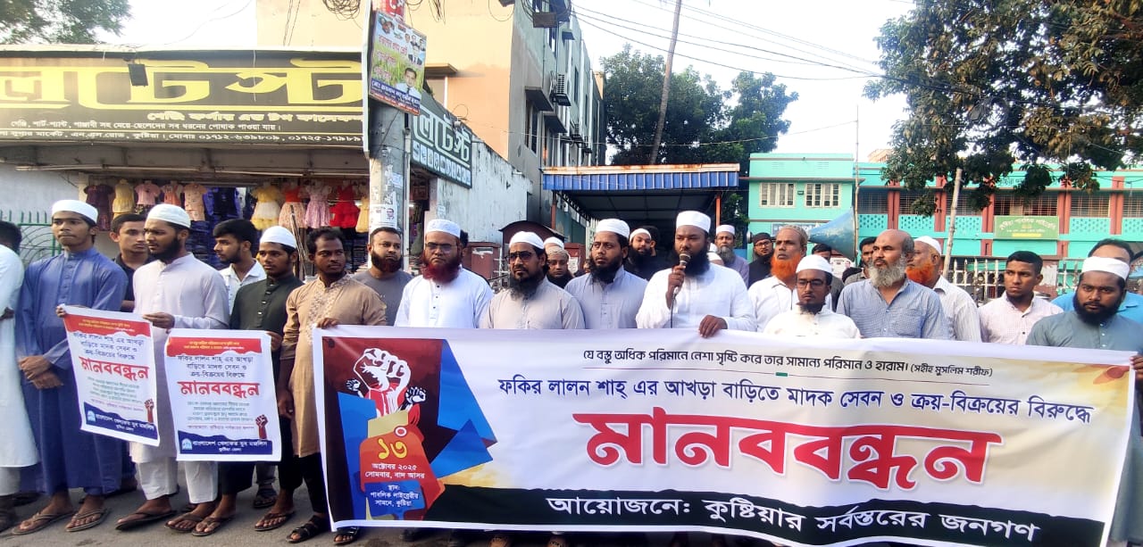 বক্তারা বলেন,লালন শাহ্-এর আখড়া একটি আধ্যাত্মিক সাধনার কেন্দ্র,অথচ সেখানে মাদক সেবন ও বেচাকেনার মতো অনৈতিক কার্যকলাপ ঘটছে—এটি ধর্ম,সংস্কৃতি ও সমাজের জন্য লজ্জাজনক।” তারা প্রশাসনের কাছে দ্রুত এসব মাদক কার্যক্রম বন্ধে কঠোর ব্যবস্থা নেওয়ার দাবি জানান।