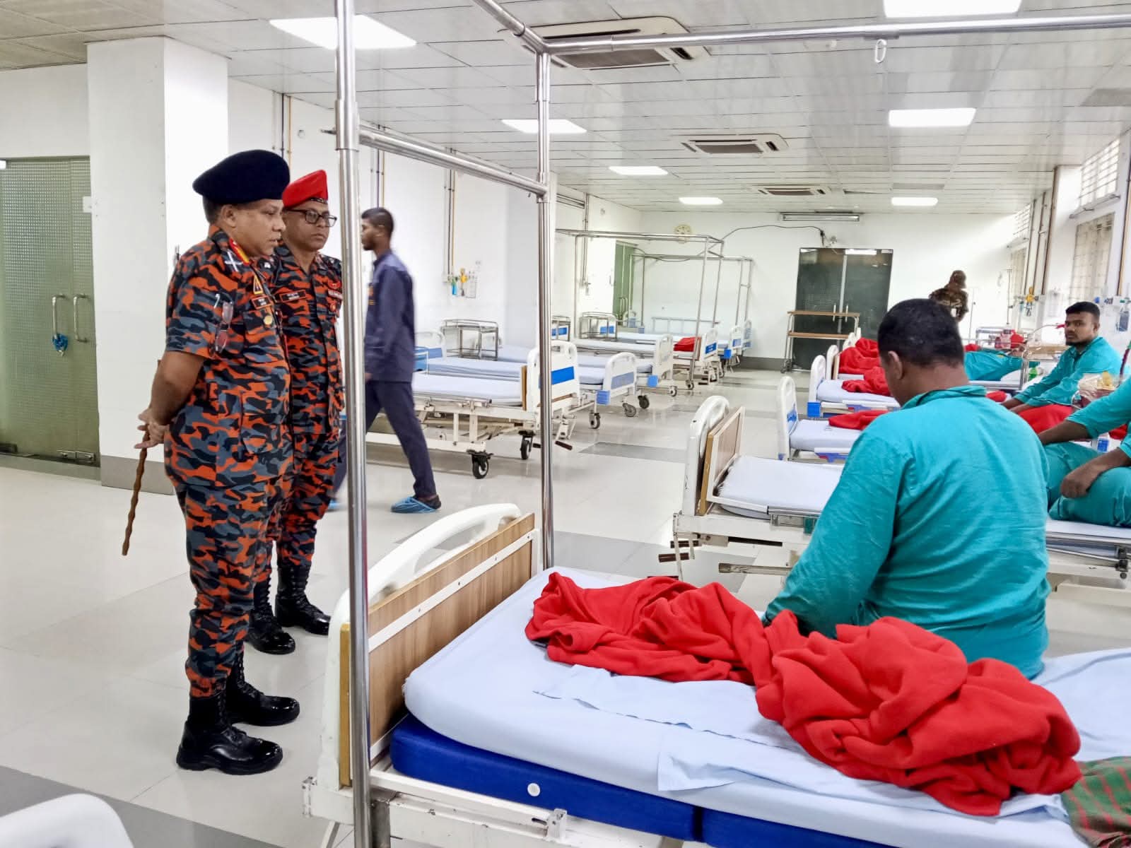 তিনি সেখানে চিকিৎসাধীন সদস্যদের শারীরিক অবস্থার খোঁজখবর নেন এবং তাদের দ্রুত আরোগ্য কামনা করেন। মহাপরিচালক আহতদের মনোবল দৃঢ় রাখতে উৎসাহ দেন এবং উপস্থিত চিকিৎসক ও কর্মকর্তাদের সঙ্গে কথা বলে যথাযথ চিকিৎসা ও সেবার বিষয়টি নিশ্চিত করার নির্দেশ প্রদান করেন।