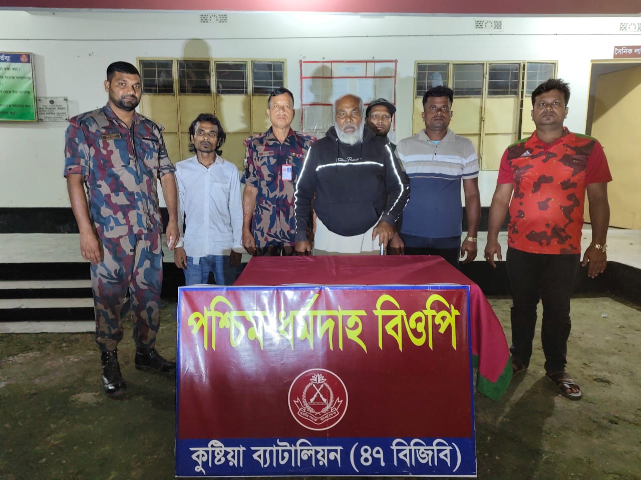 বিজিবি সূত্রে জানা যায়,গত ২ নভেম্বর ২০২৫ তারিখ বিকেল ২টা ২০ মিনিটে (১৪২০ ঘটিকায়) কুষ্টিয়া ব্যাটালিয়নের অধীনস্থ পশ্চিম ধর্মদাহ বিওপির টহল দল সীমান্ত পিলার নং ১৪৭/৩-আর থেকে প্রায় ১০০ গজ বাংলাদেশের অভ্যন্তরে এক ব্যক্তিকে সন্দেহজনকভাবে ঘোরাফেরা করতে দেখে আটক করে। পরে তার পরিচয় নিশ্চিত করা হলে জানা যায়,তিনি মোঃ ফিরোজ আহমেদ সাদ্দাম (৩৩),পিতা: মোঃ তোফাজ্জেল শেখ,মাতা: মোছাঃ ফাতেমা খাতুন,গ্রাম: মির্জানগর, পোস্ট: বহলবাড়িয়া, থানা: মিরপুর,জেলা: কুষ্টিয়া।
