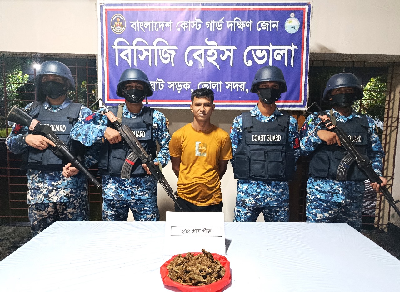 কোস্ট গার্ড মিডিয়া সেল সূত্রে জানা যায়, গোপন সংবাদের ভিত্তিতে শুক্রবার রাত ১০টার দিকে কোস্ট গার্ড বেইস ভোলা কর্তৃক ভোলা সদর উপজেলার নবিপুর টাউন স্কুল মাঠ সংলগ্ন এলাকায় একটি বিশেষ অভিযান পরিচালনা করা হয়। অভিযানের সময় এক সন্দেহভাজন ব্যক্তিকে তল্লাশি করে তার কাছ থেকে প্রায় ২৭৫ গ্রাম গাঁজা উদ্ধার করা হয়, যার আনুমানিক বাজারমূল্য ৮ হাজার ৩ শত টাকা।