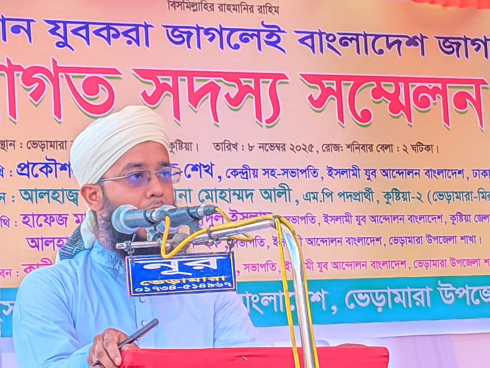 রবিবার বিকাল ৩ টায় ভেড়ামারা বাসস্ট্যান্ড চত্বরে নবাগত সদস্য সম্মেলন অনুষ্ঠিত হয়। উক্ত সম্মেলনে প্রধান অতিথি হিসেবে উপস্থিত ছিলেন ইসলামী আন্দোলন বাংলাদেশ কুষ্টিয়া জেলা শাখার সাবেক সভাপতি ও কুষ্টিয়া ২(ভেড়ামারা মিরপুর)আসনের হাতপাখার এম পি পদপ্রার্থী বিশিষ্ট আলেমে দ্বীন অধ্যক্ষ মাওলানা মোহাম্মদ আলী।