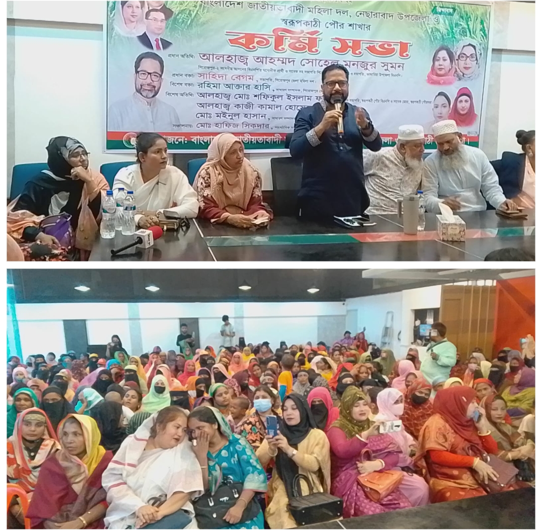 বাংলাদেশ জাতীয়তাবাদী মহিলা দল নেছারাবাদ উপজেলা ও স্বরুপকাঠী পৌর শাখার উদ্যোগে আনন্দঘন ও ঝাকঝমকপূর্ন কর্মী সভা অনুষ্ঠিত হয়েছে। সোমবার (১৭ নভেম্বর) বিকেলে উপজেলার স্বরুপকাঠী ইউনিয়ন পরিষদের সামনে শোরুম ভবনে সভার আয়োজন করা হয়। সভায় সংগঠনের রাজনৈতিক কার্যক্রম, সাংগঠনিক শক্তি বৃদ্ধি ও আগামীর কর্মপরিকল্পনা নিয়ে বিস্তারিত আলোচনা হয়।