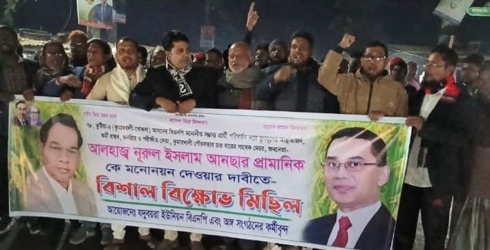 ৭৮,কুষ্টিয়া ৪ (খোকসা,কুমারখালী) আসনে বিএনপির সম্ভাব্য মনোনীত প্রার্থী পরিবর্তন করে আলহাজ্ব নূরুল ইসলাম আনছার প্রামাণিককে মনোনয়ন দেওয়ার দাবিতে বিক্ষোভ মিছিল করেছে যদুবয়রা ইউনিয়ন বিএনপির নেতৃবৃন্দ।