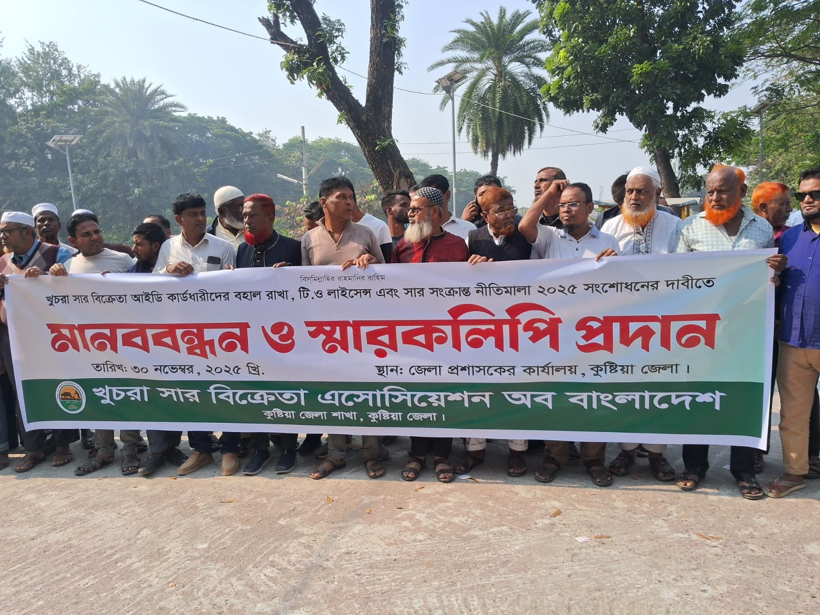 মানববন্ধন শেষে সংগঠনের নেতৃবৃন্দ কুষ্টিয়া জেলা প্রশাসকের মাধ্যমে কৃষি মন্ত্রণালয় বরাবর একটি স্মারকলিপি পেশ করেন। স্মারকলিপিতে তারা তিনটি প্রধান দাবি উত্থাপন করেন ১.দীর্ঘদিন ধরে কাজ করা খুচরা সার বিক্রেতা ও সাব-ডিলারদের বহাল রাখা,২.টি.ও লাইসেন্স প্রদানের প্রক্রিয়া সহজ ও স্বচ্ছ করা,৩.সার সংক্রান্ত নীতিমালা ২০২৫ সংশোধন করে মাঠ পর্যায়ের বাস্তবতার সঙ্গে সামঞ্জস্যপূর্ণ করা।