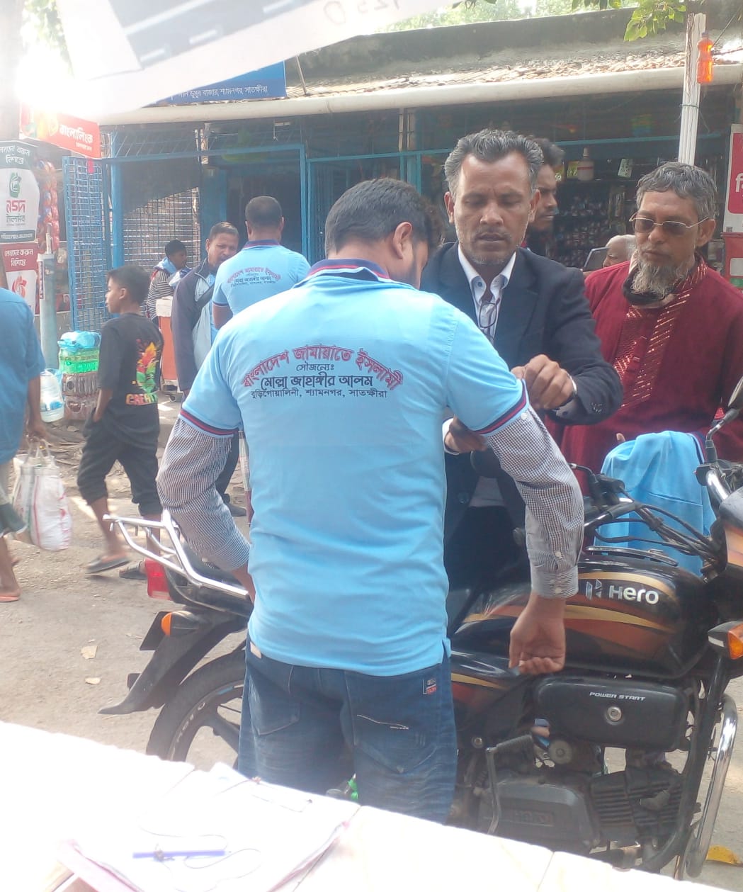 ৪ই ডিসেম্বর সকাল দশটায় নীলডুমুর খেয়াঘাট এলাকায় মোটর শ্রমিকদের মধ্যে দাঁড়িপাল্লা সম্বলিত গেঞ্জি বিতরণ করেন এই তরুণ ছাত্রনেতা।আগামী সম্ভাবনাময় শ্যামনগরের উন্নয়ন পরিকল্পনা সম্পর্কে জানতে চাইলে সাবেক সাংসদ নন্দিত জননেতা গাজী নজরুল ইসলাম এই প্রতিবেদককে জানান,সকল ধর্ম বর্ণ মত পেশা শ্রেণীভেদে ইসলামের ছায়াতলে আশ্রয় নিলে,বাংলার জমিনে আল্লাহর আইন বাস্তবায়ন করতে দাঁড়িপাল্লার পক্ষে সমর্থন দেয়ার আকুল আহবান জানিয়েছেন।