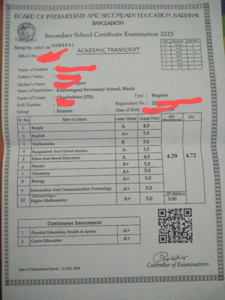 এতদ্বারা জানানো যাচ্ছে যে, আমার SSC পরীক্ষার মূল মার্কশিট হারিয়ে গেছে। আমি বরিশাল শিক্ষা বোর্ডের অধীনে SSC পরীক্ষা (সাল: ২০২৫)-এ অংশগ্রহণ করি। আমার রোল নং: 104469, রেজিস্ট্রেশন নং: 2215129203, এবং স্কুলের নাম: কাশেমগঞ্জ মাধ্যমিক বিদ্যালয়।