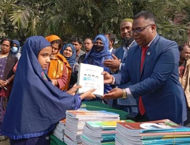 অনুষ্ঠান শেষে অতিরিক্ত জেলা প্রশাসক (শিক্ষা ও আইসিটি) এস. এম. হাবিবুল হাসান শিক্ষার্থীদের হাতে নতুন বছরের পাঠ্যপুস্তক তুলে দেন।