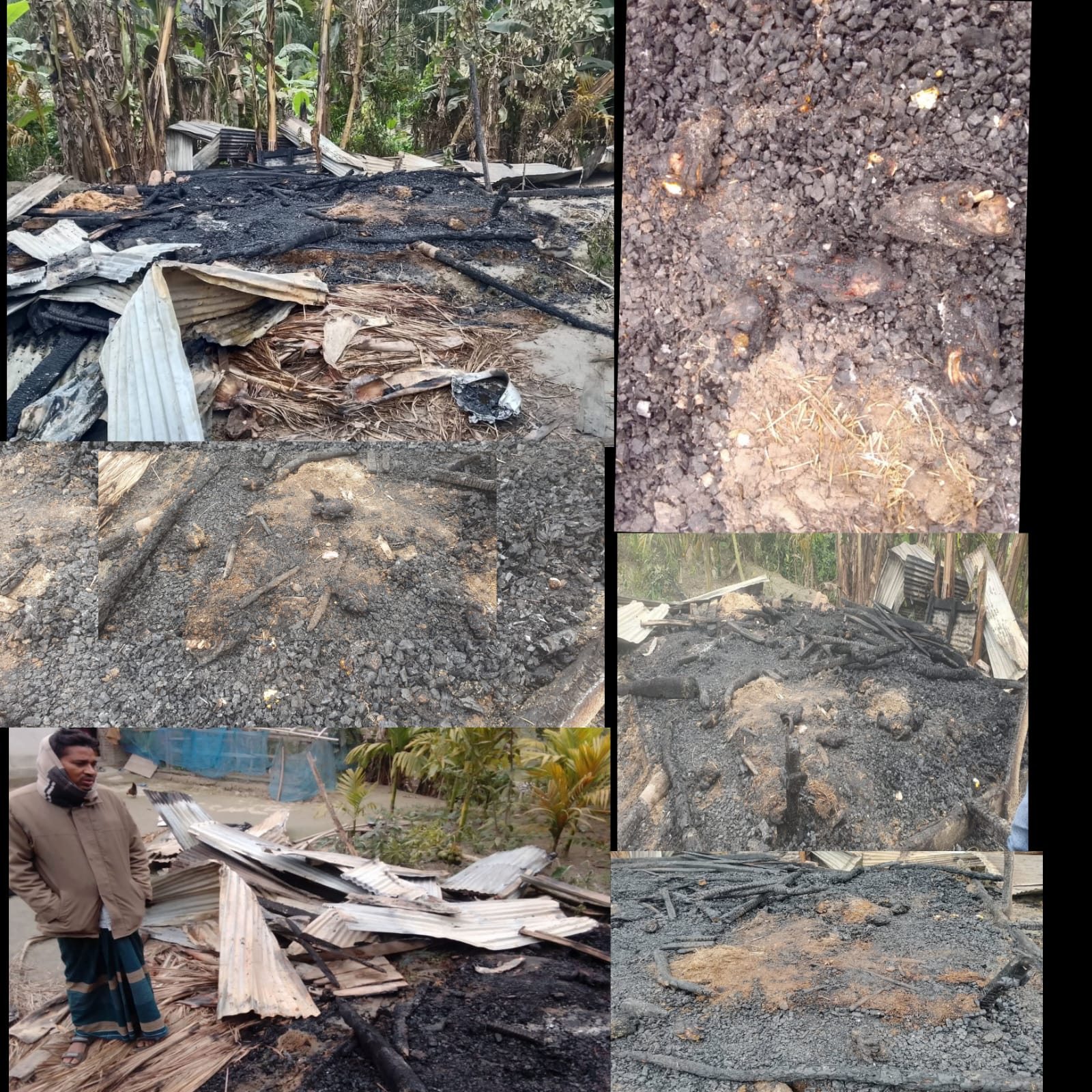 দুর্বৃত্তরা পরিকল্পিতভাবে তার হাঁস-মুরগির খামারে আগুন ধরিয়ে দেয়। মুহূর্তের মধ্যেই আগুনে পুড়ে ছাই হয়ে যায় প্রায় শতাধিক হাঁস-মুরগি।