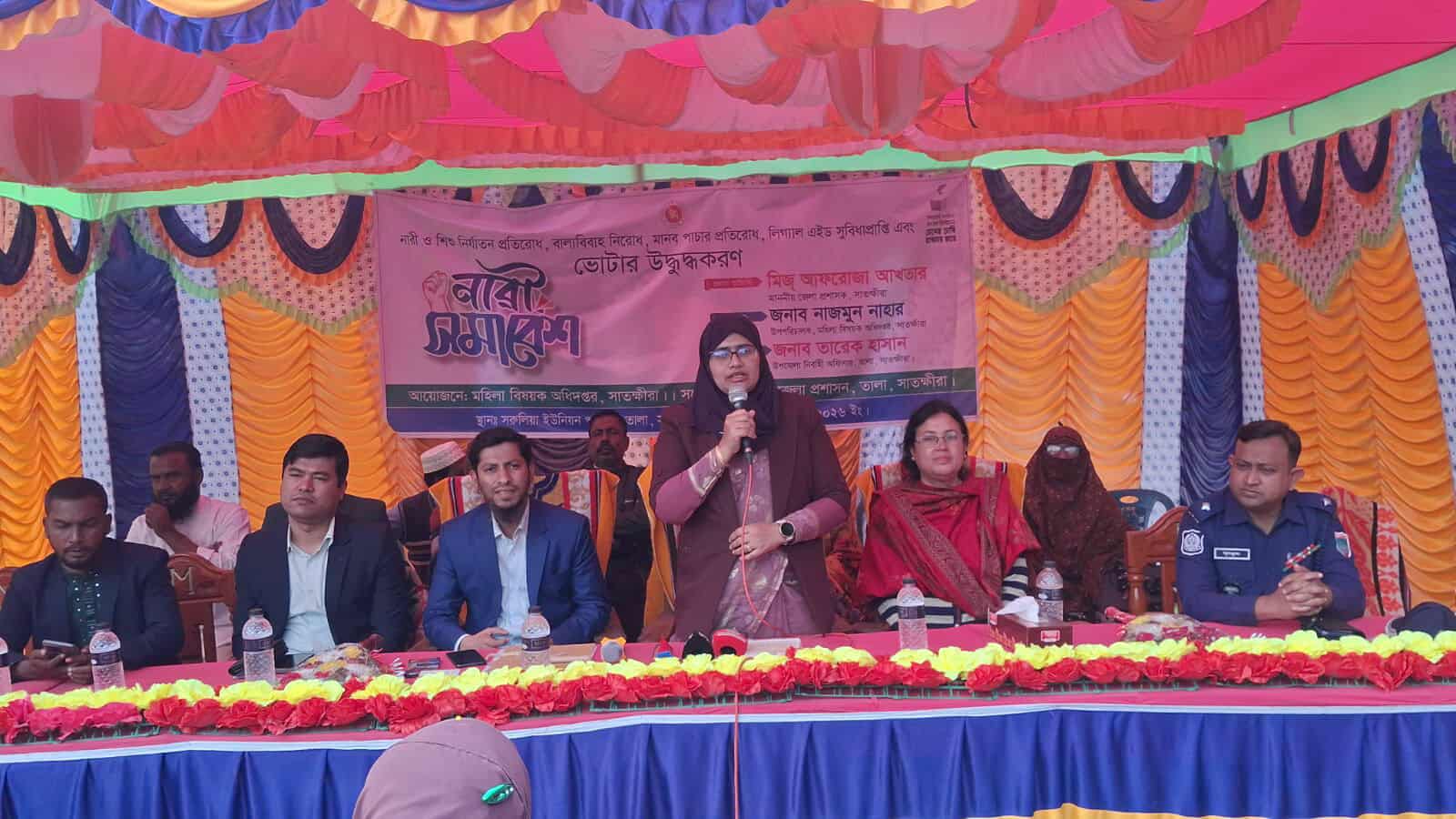 গণভোট ও ভোটার উদ্বুদ্ধকরণ, নারী নির্যাতন ও বাল্যবিবাহ প্রতিরোধ এবং মানবপাচার রোধে সচেতনতা বৃদ্ধির লক্ষ্যে সাতক্ষীরার তালা উপজেলার পাটকেলঘাটায় নারী সমাবেশ অনুষ্ঠিত হয়েছে।
