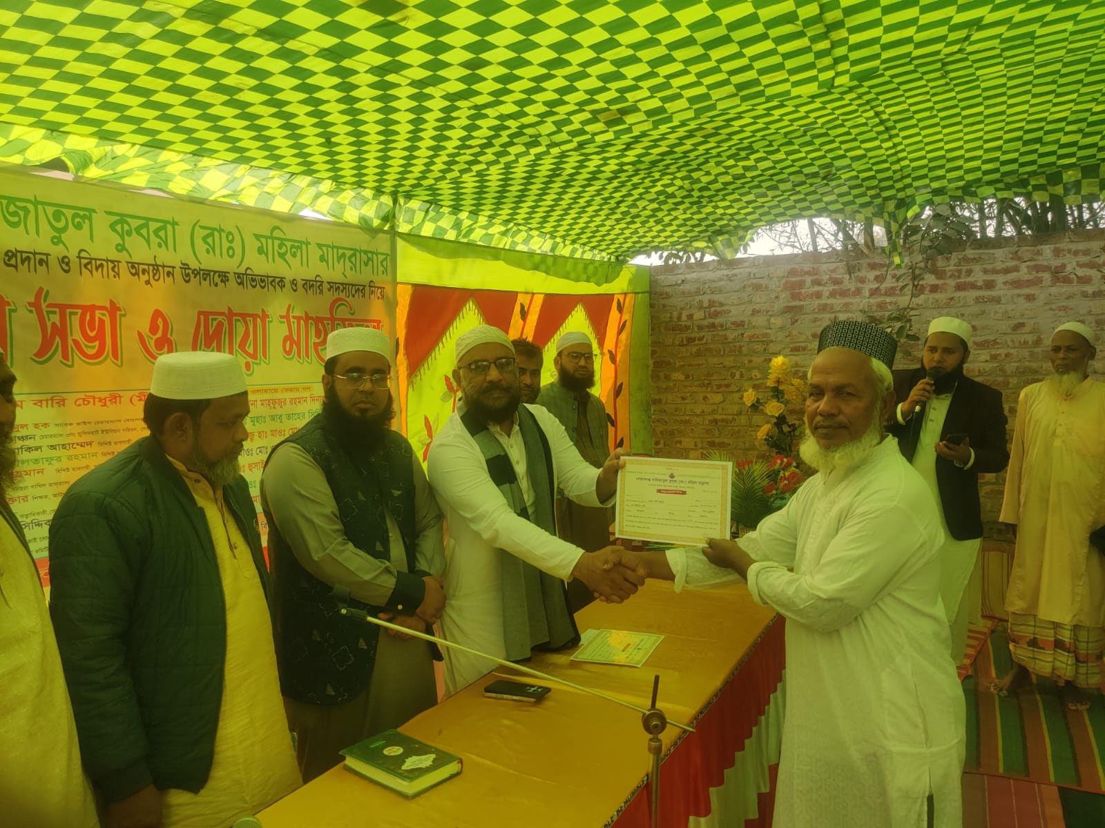 শনিবার (১৭ জানুয়ারী ) যোহর নামাজের পর মাদ্রাসা মাঠ প্রাঙ্গণে আয়োজিত অনুষ্ঠানটি পরিচালনা করেন হাফেজ লায়েল ইসলাম । এতে স্থানীয় অভিভাবক, বদরি সদস্য ও গণ্যমান্য ব্যক্তিবর্গ উপস্থিত ছিলেন।