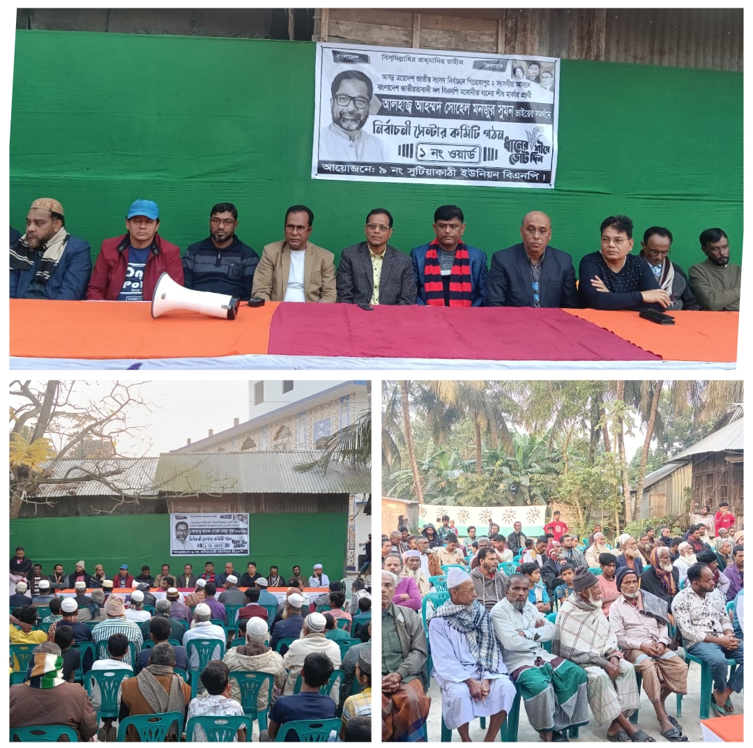 পিরোজপুর ২ আসনের নেছারাবাদ উপজেলার ৯ নং সুটিয়াকাঠি ইউনিয়নের ১ নং ওয়ার্ডে বাংলাদেশ জাতীয়তাবাদী দলের (বিএনপি) নির্বাচনী সেন্টার কমিটি গঠন করা হয়।