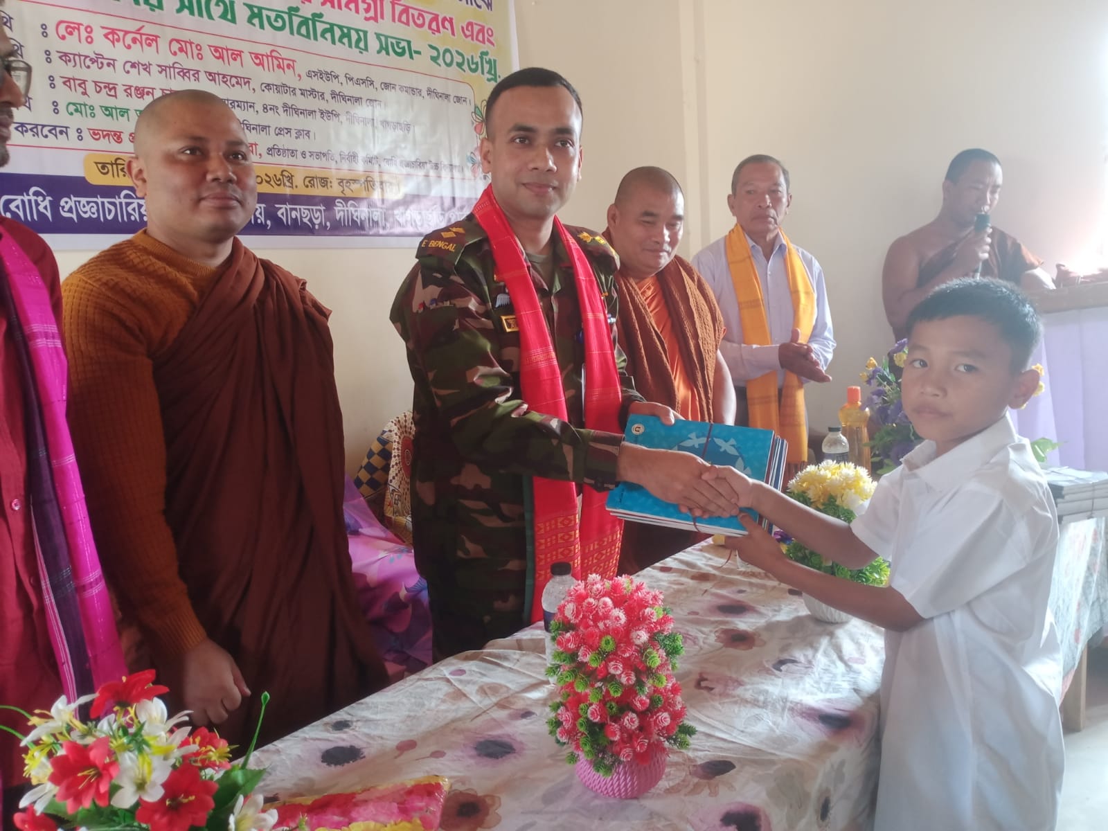 খাগড়াছড়ির দীঘিনালায় বাংলাদেশ সেনাবাহিনীর দীঘিনালা জোনের উদ্যোগে বোধি প্রজ্ঞচারিয়া উচ্চ বিদ্যালয়ের শিক্ষার্থীদের মাঝে শিক্ষা উপকরণ বিতরণ করা হয়েছে।