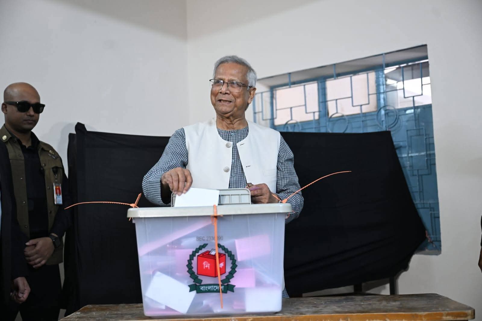 ডঃ মুহাম্মদ ইউনূস তার ভোট প্রদানের সময় বলেন, “এই নির্বাচন ও গণভোট বাংলাদেশের গণতন্ত্রের জন্য একটি গুরুত্বপূর্ণ মুহূর্ত, সবাইকে শান্তিপূর্ণভাবে ভোট দিতে অনুরোধ জানাই।” সাংবাদিকরা তাকে কেন্দ্রের বাইরে সংক্ষিপ্ত বক্তব্য দিতে দেখে থাকেন।