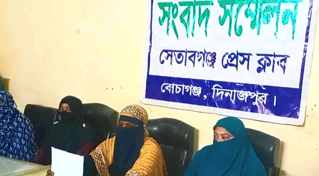 দিনাজপুরের বোচাগঞ্জ থানার ওসির বিরুদ্ধে সংবাদ সম্মেলন করেন ❝শাহ মাখদুম পাড়া'র❞ নারী রানী বেগম।