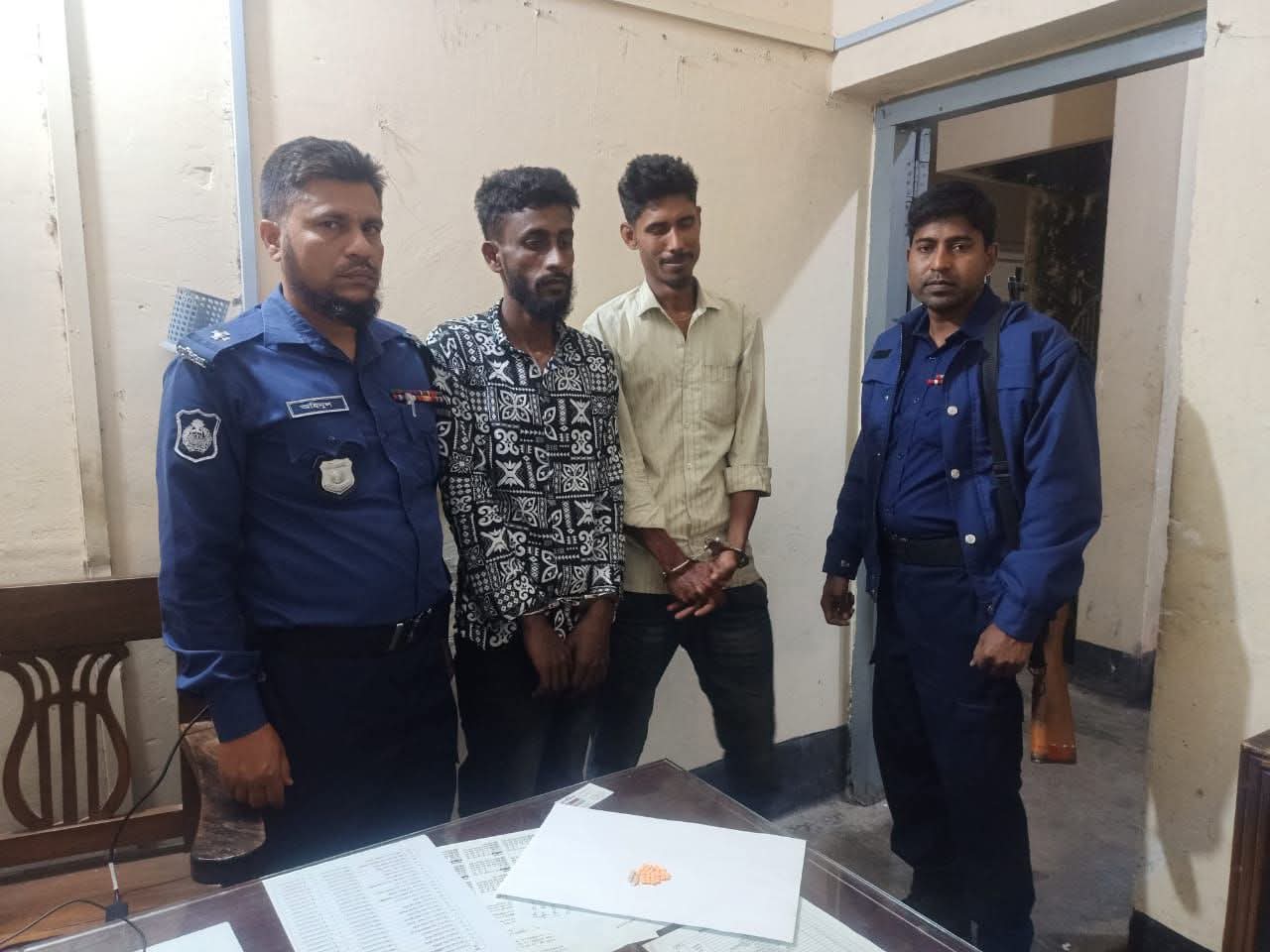 এসআই (নিঃ) মোঃ হেলাল উদ্দিন, বিপি-৯৩১৯২২৪৩৯৩, চরফ্যাশন থানা, ভোলা সংগীয় অফিসার ফোর্সসহ ইং ২৪/০৩/২০২৬ তারিখ রাত্র ২২.১০ ঘটিকার সময় চরফ্যাশন থানাধীন চরফ্যাশন পৌরসভার ৯নং ওয়ার্ডস্থ জালুমুন্সি চৌমোহনীর পূর্ব পাশে জনৈক আড়াইল্লা হাওলাদার বাড়ীর সামনে পাকা রাস্তার উপর থেকে মাদক ব্যবসায়ী ১। মোঃ নোমান মাঝি (৩০), পিতা- মোঃ কাশেম মাঝি, সাং-চর আফজাল, ১নং ওয়ার্ড, মাদ্রাজ ইউপি, থানা-চরফ্যাশন, জেলা-ভোলা, ২। মোঃ মোতালেব ঢ়াড়ী (২৩), পিতা মোঃ নুর ইসলাম ঢ়াড়ী, সাং-চর আফজাল, ১নং ওয়ার্ড, মাদ্রাজ ইউপি, থানা-চরফ্যাশন, জেলা-ভোলাদের গ্রেফতার করা হয়েছে। উক্ত মাদক ব্যবসায়ীদের নিকট থেকে ৪০ (চল্লিশ) পিঁচ ইয়াবা ট্যাবলেট উদ্ধার করা হয়েছে। এ বিষয়ে আইনগত কার্যক্রম অব্যাহত আছে।
