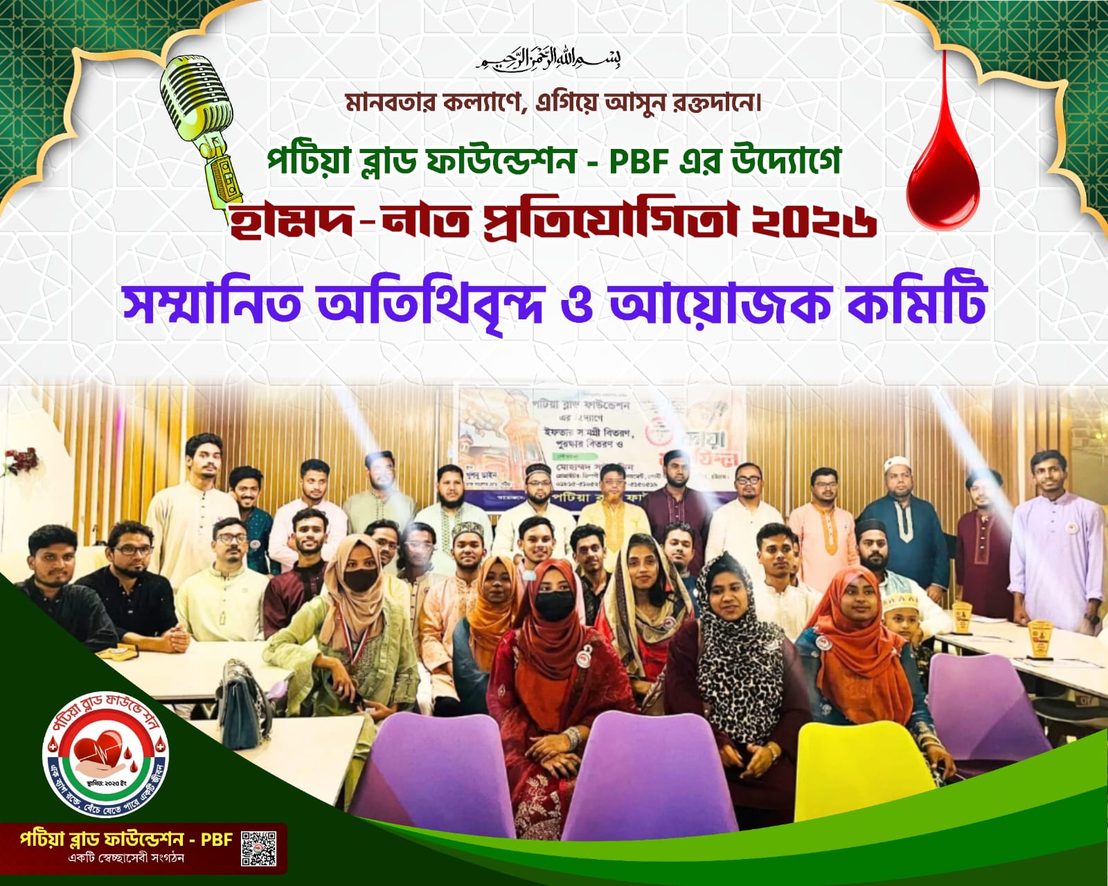 চট্টগ্রামের পটিয়ায় স্বেচ্ছাসেবী সংগঠন পটিয়া ব্লাড ফাউন্ডেশনের উদ্যোগে সম্প্রতি ডাক বাংলো মোড়স্থ একটি অভিজাত রেস্তোরাঁয় হামদ ও নাত প্রতিযোগিতায় বিজয়ীদের ও সংগঠনের সক্রিয় সদস্যদের পুরস্কার,বিতরণ ও দোয়া মাহফিল অনুষ্ঠিত হয়েছে।