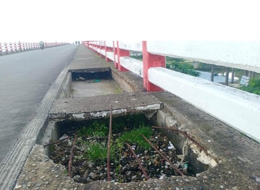 সরেজমিনে দেখা গেছে, সেতুটির দুই পাশের ফুটপাতের বেশ কিছু স্লাব বিধ্বস্ত হয়ে আছে। এর আগে কিছু স্লাব মেরামত করা হলেও নতুন করে ভাঙা স্লাবগুলো অন্তত এক বছর ধরে অরক্ষিত অবস্থায় রয়েছে। ফলে পথচারীরা বাধ্য হয়ে মূল সড়ক ব্যবহার করছেন। বিশেষ করে সন্ধ্যার পর সেতুতে ভ্রমণকারী ও পথচারীর চাপ বাড়ে, যা ঝুঁকি আরও বাড়িয়ে তুলছে। প্রতিদিন এই সেতু দিয়ে কুয়াকাটাগামী দূরপাল্লার বাসসহ পণ্যবাহী ট্রাক ও ট্রলি চলাচল করে।