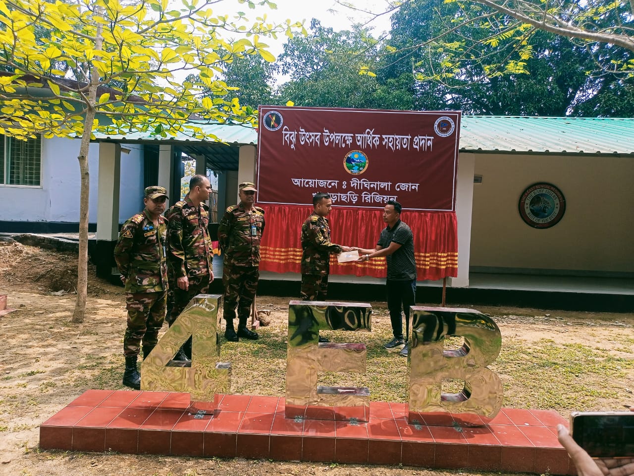 আসন্ন পার্বত্য অঞ্চলের অন্যতম প্রধান ঐতিহ্যবাহী উৎসব বিঝু উপলক্ষে খাগড়াছড়ির দীঘিনালা উপজেলায় ৯টি বিঝু উদযাপন কমিটির মাঝে আর্থিক সহায়তা প্রদান করেছে দীঘিনালা জোন।