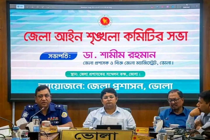 অদ্য ১২ এপ্রিল, ২০২৬ খ্রিঃ (রবিবার) জেলা প্রশাসকের সম্মেলন কক্ষে ভোলার জেলা প্রশাসক ও বিজ্ঞ জেলা ম্যাজিস্ট্রেট ডা. শামীম রহমান মহোদয়ের সভাপতিত্বে ‘জেলা আইন-শৃঙ্খলা কমিটির’ সভা অনুষ্ঠিত হয়।
