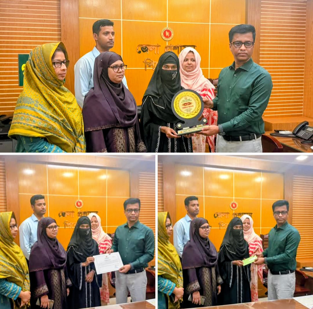 বাল্যবিবাহ প্রতিরোধে তহমিনা আক্তারের এই সাহসী পদক্ষেপের স্বীকৃতি স্বরূপ বুধবার (২২ এপ্রিল ২০২৬) জেলা প্রশাসক ও বিজ্ঞ জেলা ম্যাজিস্ট্রেট জনাব আবু সাঈদ তাকে "কন্যা সাহসিকা" সম্মাননা স্মারক, সার্টিফিকেট ও তার পড়াশোনা চালিয়ে নেওয়ার জন্য আর্থিক অনুদান প্রদান করেন।