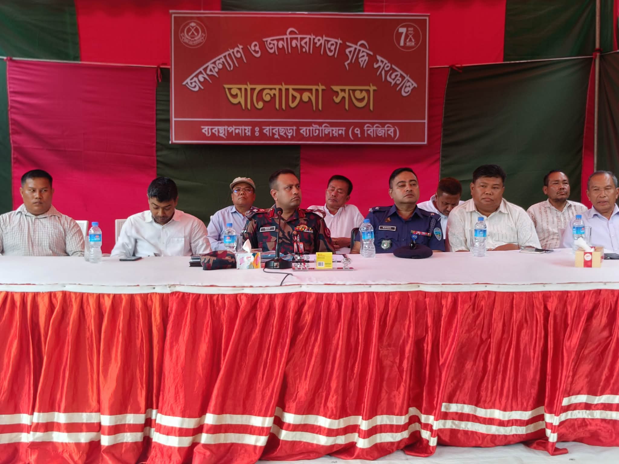 অনুষ্ঠানে প্রধান অতিথি হিসেবে উপস্থিত ছিলেন ব্যাটালিয়ন অধিনায়ক লেফটেন্যান্ট কর্নেল ইশতিয়াক আহমেদ ইবনে রিয়াজ, এসপিপি। তিনি তার বক্তব্যে বলেন, সীমান্ত এলাকার সার্বিক নিরাপত্তা নিশ্চিত করা বিজিবির অন্যতম প্রধান দায়িত্ব। মাদক চোরাচালান, অবৈধ অনুপ্রবেশ ও মানবপাচারের মতো অপরাধ দমনে বিজিবি সর্বদা সতর্ক অবস্থানে রয়েছে। তবে এসব অপরাধ প্রতিরোধে জনসম্পৃক্ততা, পারস্পরিক সহযোগিতা ও সচেতনতার গুরুত্বও তিনি তুলে ধরেন। পাহাড়ি ও বাঙালি সকল জনগোষ্ঠীর মধ্যে সম্প্রীতি বজায় রেখে একটি শান্তিপূর্ণ পরিবেশ গড়ে তুলতে বিজিবি কাজ করে যাচ্ছে এবং ভবিষ্যতেও এ ধারা অব্যাহত থাকবে বলে তিনি উল্লেখ করেন।