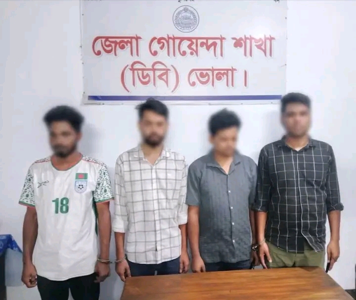 ২৬ এপ্রিল ২০২৬ তারিখ দিবাগত রাত ০১:৪৫ ঘটিকায় জেলা গোয়েন্দা শাখার এসআই (নিঃ) বিপ্লব কান্তি দাস ও তাঁর সঙ্গীয় অফিসার ফোর্সসহ ভোলা সদর থানাধীন রতনপুর আরজু ইঞ্জিনিয়ারের বাড়ির পেছনে মাদক বিরোধী অভিযান পরিচালনা করেন। অভিযানকালে মাদক সেবনরত অবস্থায় ১। মোঃ তাইফুর রহমান বায়জিদ (২৯), ২। মোঃ রুবায়েত হোসেন (২৭), ৩। ফারদিন এহছান রিফাত (২৯) এবং ৪। সাইদুর রহমান (২৭)-দের হাতেনাতে গ্রেফতার করা হয়।