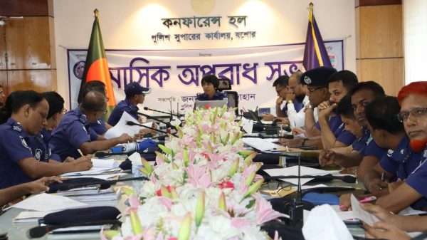 হাফিজুর রহমান(যশোর)প্রতিনিধি অদ্য ১৭/০৬/২০২৫ খ্রিঃ দুপুর ১২.০০ ঘটিকায় পুলিশ সুপারের কার্যালয়ের কনফারেন্স হলে যশোর জেলার সম্মানিত পুলিশ সুপার জনাব রওনক জাহান মহোদয়ের সভাপতিত্বে মাসিক অপরাধ পর্যালোচনা সভা অনুষ্ঠিত হয়। সভায়