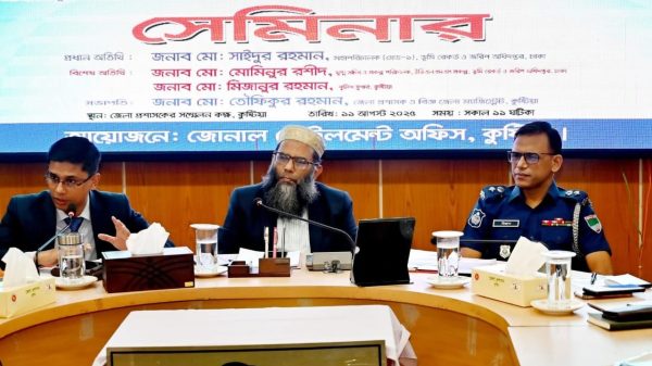 খুলনা বিভাগীয় ব্যুরো প্রধান। EDLMS প্রকল্পের আওতায় কুষ্টিয়া সদর উপজেলায় চলমান ডিজিটাল ভূমি জরিপ কার্যক্রম নিয়ে সচেতনা তামূলক সেমিনার অনুষ্ঠিত হয়েছে। আজ সোমবার সকাল ১১টায় জেলা প্রশাসকের কার্যালয়ে এ সেমিনারের