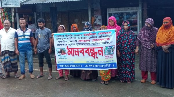 হাফিজুর রহমান(যশোর)প্রতিনিধি কেশবপুর উপজেলার হাসানপুর বাজারে সন্তানের স্বীকৃতি চাওয়ায় তাসলিমা বেগমকে বেধড়ক মারপিট ও হত্যাচেষ্টার প্রতিবাদে সোহাগ হোসেনকে গ্রেফতার পূর্বক দৃষ্টান্তমূলক শাস্তির দাবিতে মানববন্ধন করেছেন এলাকাবাসী। বুধবারবার (১৩ আগস্ট )