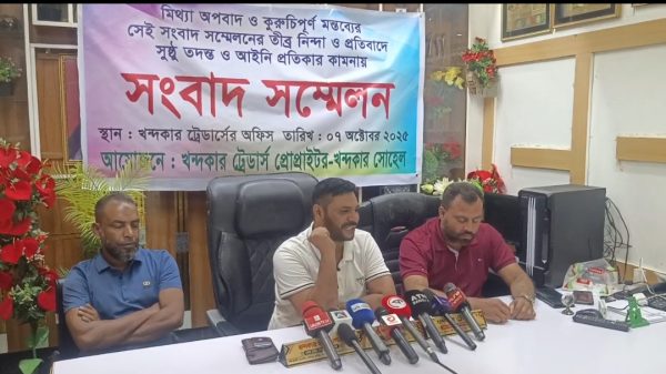 মোঃ আশরাফ ইকবাল পিকলু মাজমাদার খুলনা বিভাগীয় ব্যুরো প্রধান। কুষ্টিয়ার স্থানীয় প্রতিষ্ঠান খন্দকার ট্রেডার্স প্রোপ্রাইটর মো: খন্দকার সোহেল রবিবার (৭ অক্টোবর ২০২৫) রাত ৮:০০টায় তাঁর অফিসে এক জরুরি সংবাদ সম্মেলনের